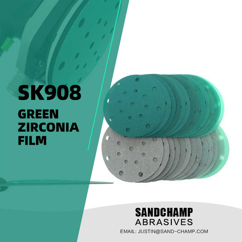 Sandchamp SK908 is zirconia film backing sandpaper,hook and loop sanding discs.